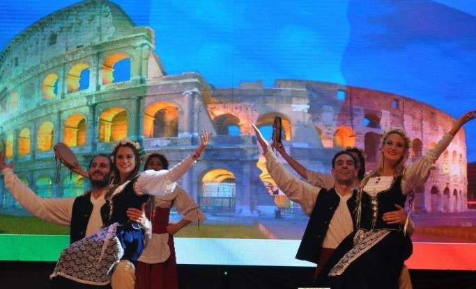 Events begin with a Grand Parade through the town centre featuring participants dressed in their traditional costumes, from the local communities of: Arab, Brazil, Czech Republic, Germany, Italy, Japan, Nordic, Paraguay, Poland, Portugal, Russia, Spain, Switzerland and Ukraine. This is a precursor to the party festival at the parade's destination in the ten hectare Nation's park. It's on the main stage there the action takes place with singers, dancers and musicians performing to the audience's delight, evidenced by the enthusiastic applause.