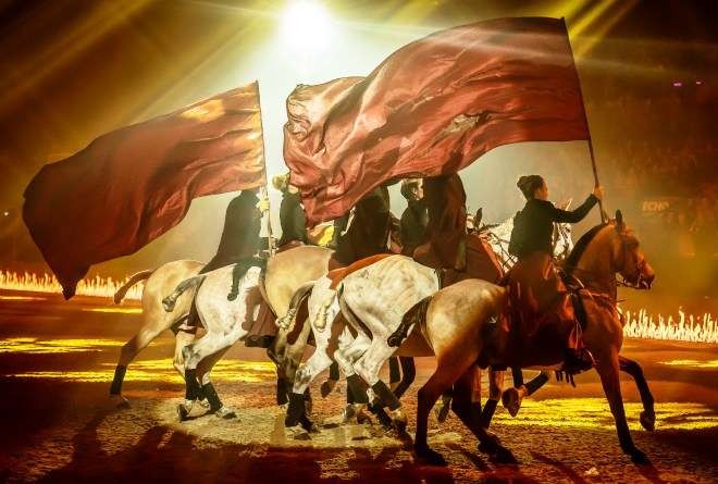 Sandwiched between the show jumping and dressage are spectacular stunt acts and live musical performances.