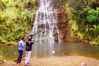 Teahuahu translated from New Zealand's Native Maori tongue means pendulums of silver threads, an apt description for the torrent of water tumbling down the mountain into a calm green pool.