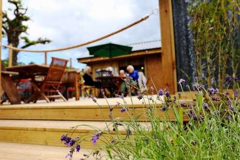 So, when you walk round to the front of the building and find a large, decked terrace, with expansive views across the stunning Devon countryside and a quaint, rustic café, it comes as a big surprise.