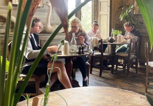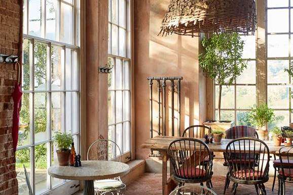 The quirky, homely café is built from recycled and reclaimed materials, in a field on Coldharbour Farm, from where it gets its free-range lamb, pork, eggs and other fresh produce.
