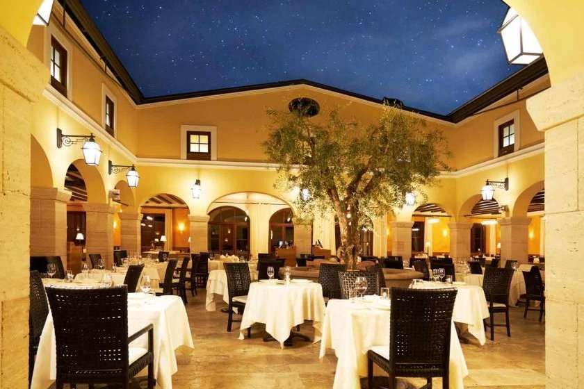 Located a short walk uphill from the resort, the estate overlooks the cypress trees and rolling hills of the Val d'Orcia and valley that's also a UNESCO World Heritage site.