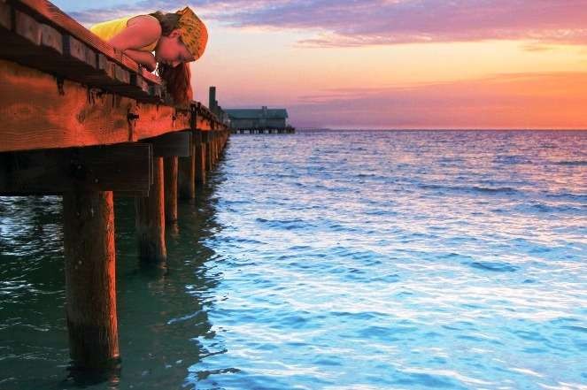 The waters lapping against the pier posts, heron looking for a place to rest and a couple of anglers fishing for grouper.