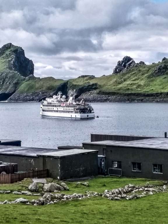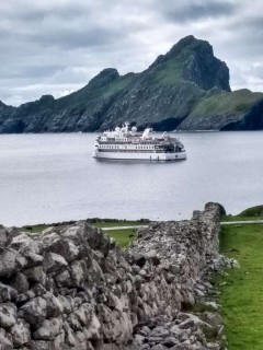 It is 6 am, and my first instinct is to switch his voice off as I habitually do at home to my vociferously intrusive alarm clock. But the source of the voice, filling my spacious cabin to the brim, is nowhere to be found and is therefore un-switch-off-able. I then realise then that I am already fully awake and ready for another day of adventures and close encounters with the magnificent Scottish Islands. The question that is bothering me now is whether the Zodiac landing on the island of St. Kilda (or Foula, or Staffa) is going to be 'wet' or 'dry', and that should dictate a 'dress-code' for the day: water-proof pants and rubber boots, stocked up in the ship's 'Mud Room', or ordinary jeans and trainers.