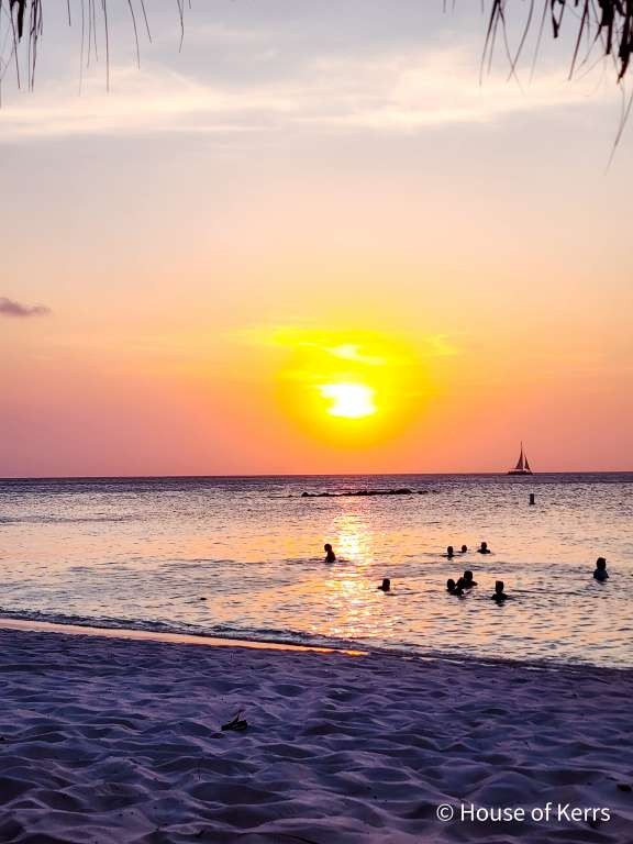 We were perfectly content to enjoy our kid-less escape in beach bum mode, but locals highly recommended a sunset catamaran cruise, which was a lovely way to see the other parts of the Island (Eagle Beach, the California Lighthouse in Noord, near Arashi Beach) and the only for-fee experience we invested in during our stay.