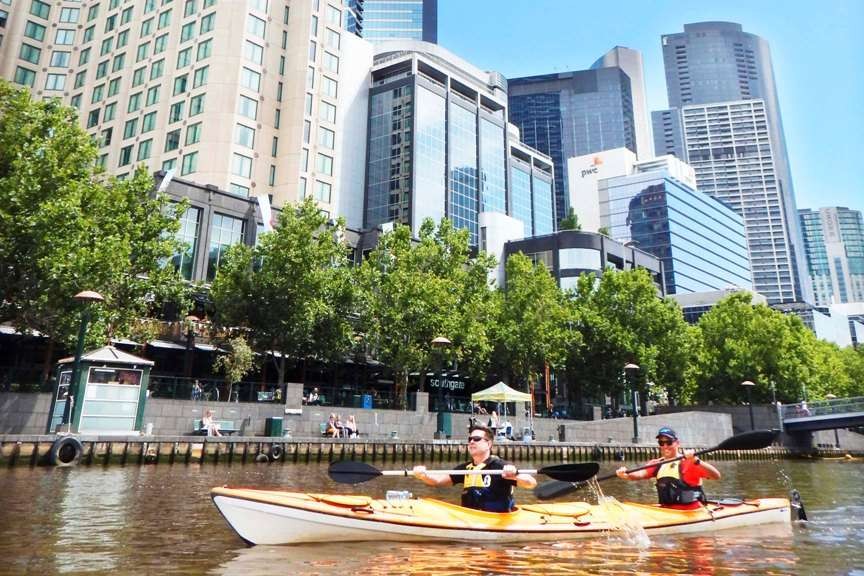 With Kayak Melbourne we paddle through downtown's skyscrapers on the Yarra River.