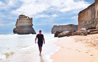 Undaunted, we pile out of the van and view them first from the clifftop before hiking and descending 100 step to the beach where the Apostles loom.