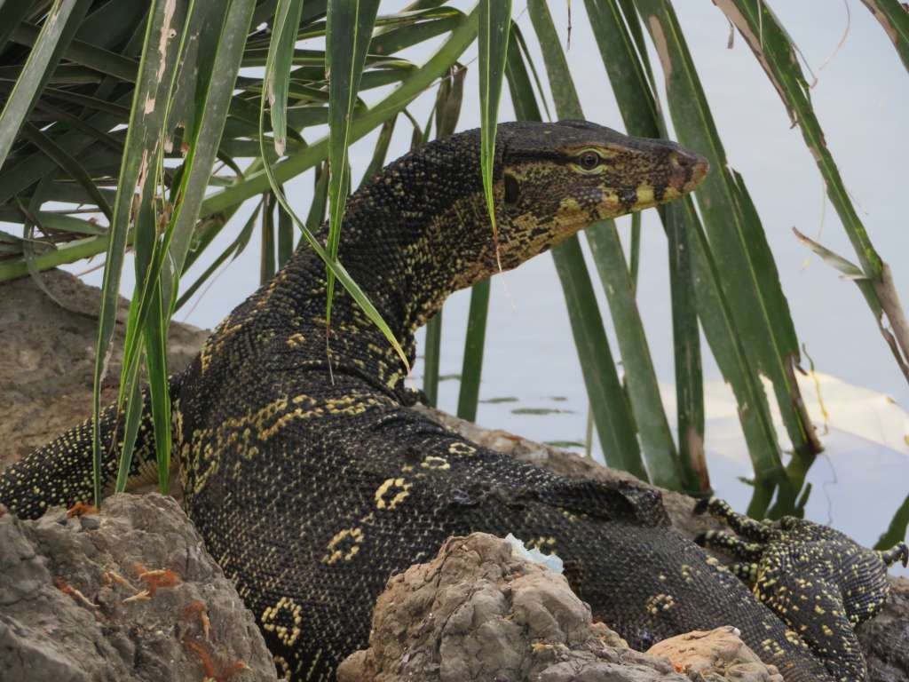 When we first entered the park we walked several kilometers with no lizards in sight. I asked one of the food stand ladies and she said keep walking around the lake and you will find them.