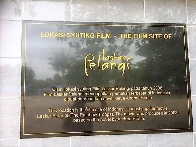 The Belitung has become tourist hot spot since 2008 because of the hype of Phenomenal Laskar Pelangi (Rainbow Troops) movie that was watched by more than 6 million people in Indonesia and become the top box office movie in Indonesian film history. The movie is taken from Laskar Pelangi story made in Gantong Village, East regency, the best seller Indonesia novel created by Andrea Hirata, a Belitung-born writer described bout 10 elementary school students who flight continuity of their poor school. As a result, it has inspired thousands of people to love the touching story and treasure the natural beauty. The movie highlighted a few spots of Belitung icons such as Tanjung Tinggi Beach and Tanjong Kelavang Beach and Lengkuas Island and made Belitung more popular via media. Andrea Hirata has dedicated himself to build a Museum kata Andrea (Literature Museum of Andrea Hirata) to explore about Laskar Pelangi. Meanwhile, visitors can visit Manggar Town, a second town in Belitung, capital of East regency, a famous coffee tradition and many coffees shop can be found in the town as well as shopping.