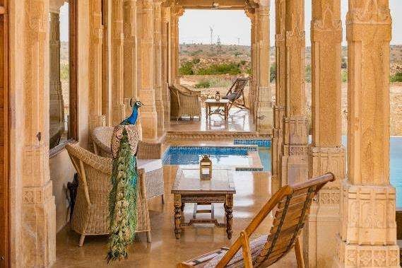 The fort-style resort is Suryagarh, a gateway to the Thar Desert, also known as the Great Indian Desert, and an arid region in the north-western part of the Indian subcontinent in India and Pakistan.