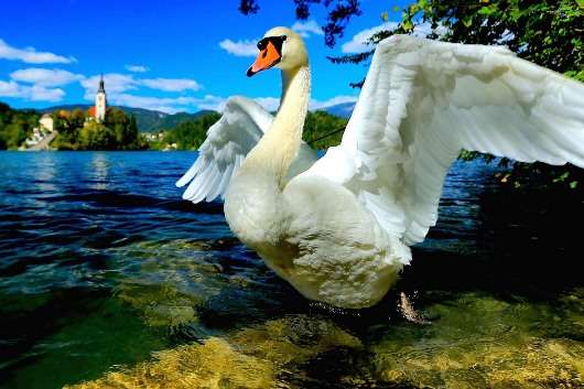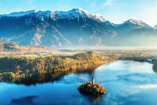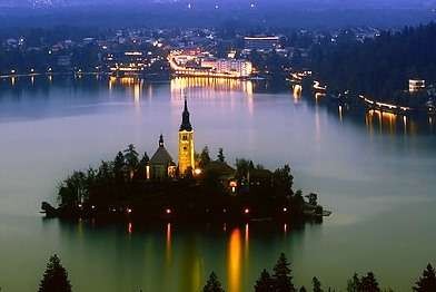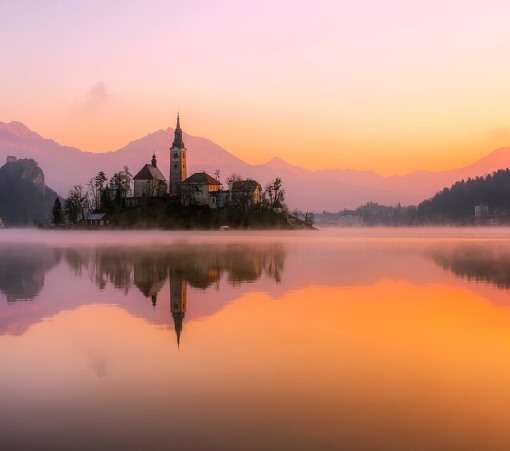 Atop a small island in the lake's centre is the Pilgrimage Church of the Assumption of Maria.