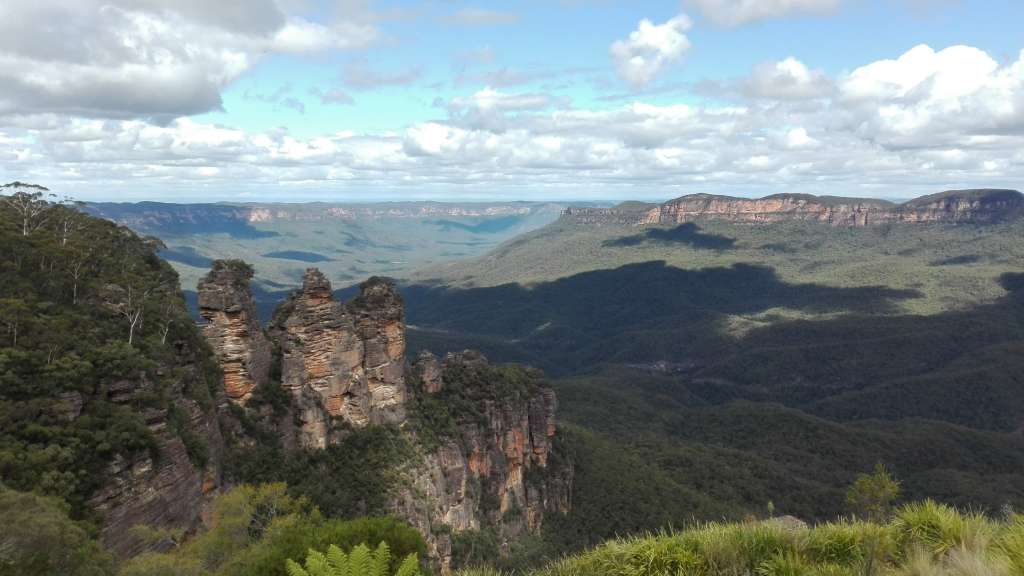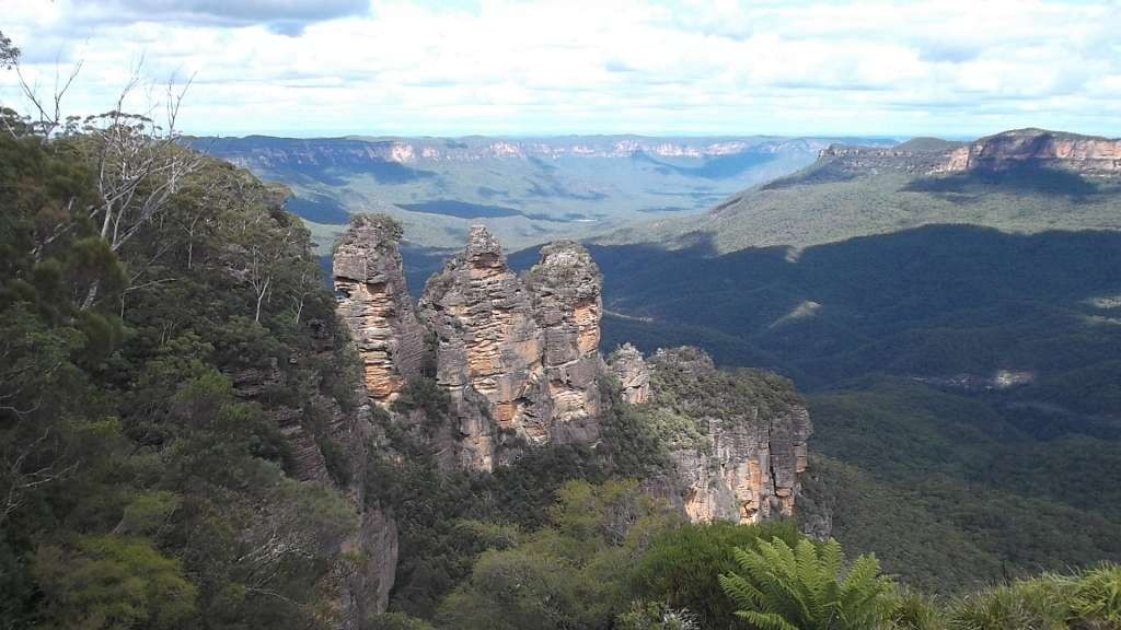 Back on our tour bus for an additional 60-minute ride west, we came to the beautiful Blue Mountains. They get their name from the natural blue haze caused by the eucalypt trees. The trees secrete oil drops and when mixed with the sunlight and vapor result in a beautiful blue hue.