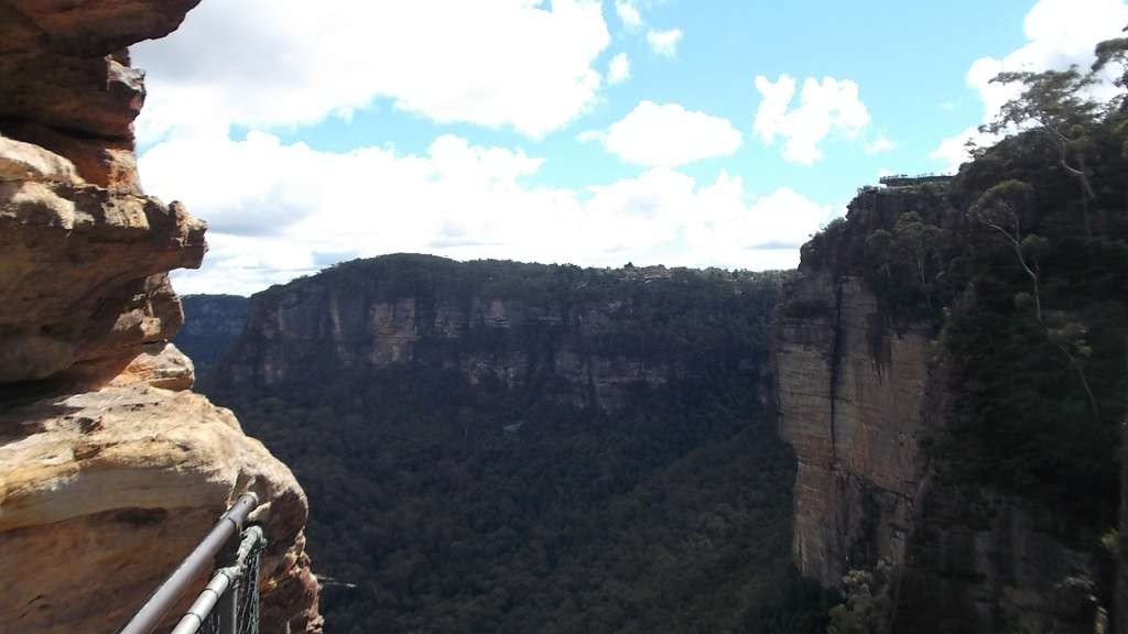 From the same point look down to the left and you will see Katoomba waterfalls as it descend 244 meters into the Jamison valley.