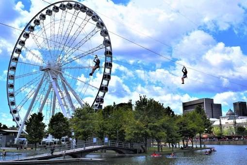 MTL Zipline, Canada's longest urban zipline at 400 metres, also calls our name for an exhilarating aerial transit over the crowds and the Bonsecours Basin below.