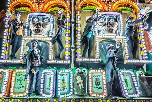 Each will be lit by thousands of light bulbs, with many using hydraulically moving parts and all playing music to support the dance movements of the costumed carnivalites onboard or enhance the tableaux scene created.