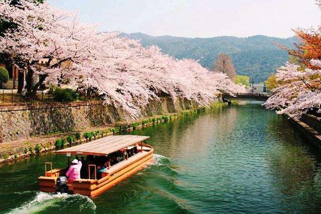 The waterway, which runs through the city centre, becomes lined with cherry blossom each spring.