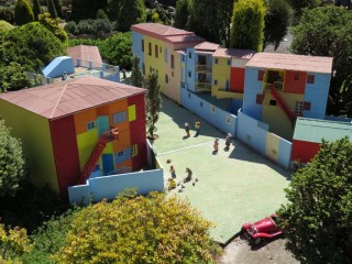 Cockington Green's international display was established in the late 1990s, achieving better utilisation of land taken up by a small lake around which the miniature steam train circled. There were many months of work involved in firstly draining the lake and then creating access to the new international display area underneath the miniature steam train line.