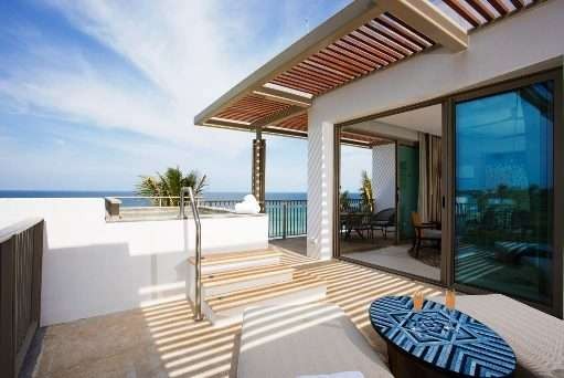 It is a 325-room property surrounded by palm trees and the Pacific Ocean and with resort bungalows, pavilions, and cabanas sitting in coastal vegetation and all with views of the ocean.