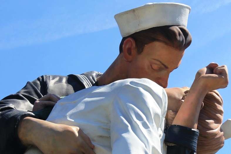It is, in fact, the statue of an American sailor kissing his sweetheart in a passionate, if somewhat theatrical embrace.