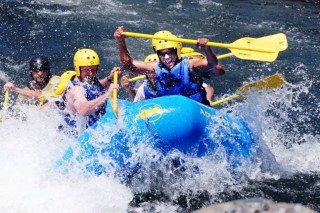 It's a blast having Raft California guide Jeff Steele scream at us to paddle rigorously one, two, three forward and one, two backward to avoid smashing into boulders jutting out of rapids with names such as Meat Grinder, Racehorse Bend, Threat and Trouble Maker.