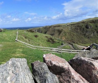 On the shore just east of Durness is Smoo Cave, with a combination of sea and freshwater and one of Britain's largest cave mouths – a massive 15-metre-wide gaping hole in the limestone cliff. There are 100 steps down to the beach from where the cave can be explored on foot up to a point, but then you have to be taken into the inner cave by rubber dinghy.