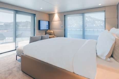 The yacht's marina platform provides guests with easy access to watersports and activities, including the on board SEABOBs and the very latest in electric bikes from gocycle.