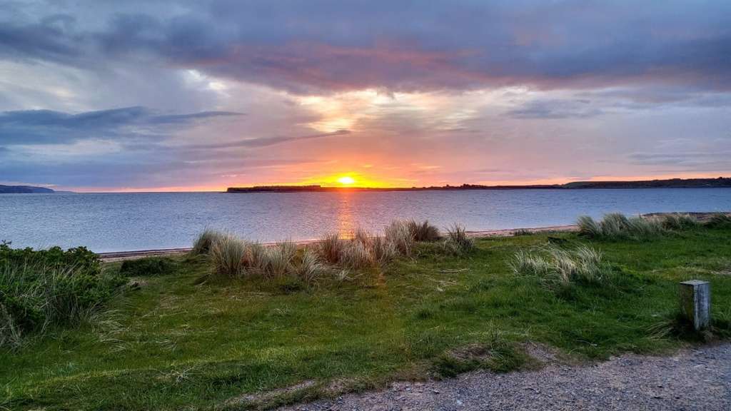 The newly risen sun coloured the sky hues of orange, purple and pale blue as it climbed above Fort George across the water. It laid a golden path back to the shore on which I sat. I could hear the rush of a brisk morning breeze which felt cold across my face. Somewhere the cry of a seagull, no doubt looking for fish, rose above the hiss of the sea breaking on the shore. I was looking for dolphins off Chanonry Point.