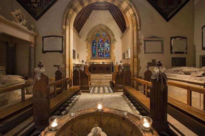 The church in the grounds was rebuilt at the end of the 12th century in the Norman style and incorporated the remains of the earlier Saxon church.
