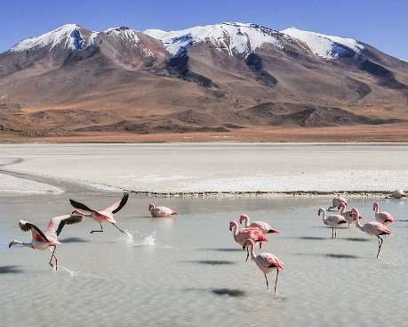 Traveling from Atacama to Uyuni, the route weaves along the Qhapaqnan of the ancient Inca trail through highlands dotted with volcanoes, lagoons, geysers, and monumental rock formations.