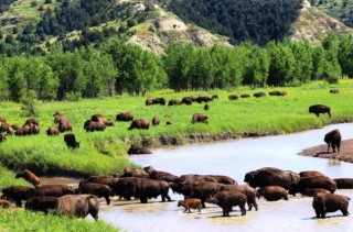 This takes in the rugged Badlands, where bison roam freely along deer, elk, wild horses, longhorns and coyotes.