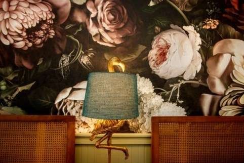 Inside, Ellie Cashman designed the room's wallpaper, which takes inspiration from still life painters in the Dutch Golden Age.