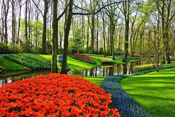 Flower exhibition Keukenhof is located in the Bollenstreek (flower bulb region), with the 32 ha exhibition is held on the is 250 ha Keukenhof Estate, which also has 16 nationally listed buildings.