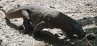 We called at Komodo Island in Indonesia. The area was very picturesque, a combination of rusty-red volcanic hills, savannah and forests encircled by calm, glistening seas. The island is known for its three metre long monitor lizard dragons - there are 4000 of them and they are not friendly. One headed towards us with its long tongue whipping out, slobbering its poisonous venom. We jumped into the bushes out of its way.