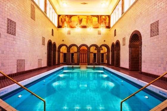 You can negotiate much of the elaborately pillared, tiled, muralled and vaulted circa 1913 bathhouse wrapped in a towel or wearing a robe.