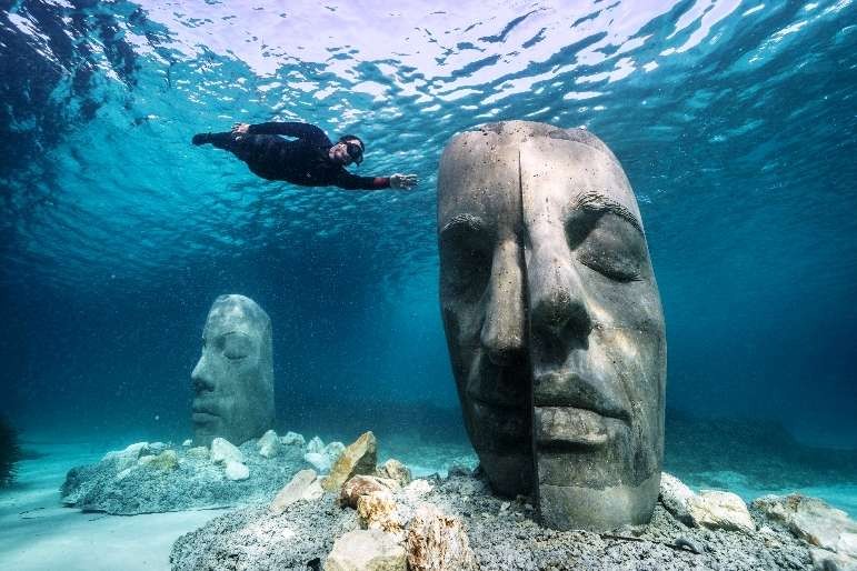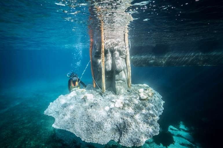 Made from an ecological material, the statues will encourage the return of underwater flora and fauna that will gradually repopulate the area around the works, which has been set aside for safe swimming.