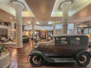 You feel history as you walk down the ramp in the hotel lobby next to a Model A Ford on display.Scattered around the lobby you also find mannikins wearing fashions from the 1920's.Black and white archival photos on the walls and signage tells you that this hotel was once THE department store of Asheville's downtown.It was originally named Bon Marché in homage to one of the first department stores of Paris.If you time it right, you might be arriving just when one of the regular Lindy Hops to a live Big Band is held in one of its downstairs watering holes that feels snug with walnut or walnut stained interiors.