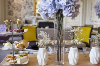 Sitting listening to gentle jazz, I sipped on a delicious, expertly made Hendrick's gin cocktail with clear crème de cacao and light, frothy egg white.Admiring my grand surroundings I nibbled on a selection of cheese, shrimp and venison canapés served on small, flat stone platters.