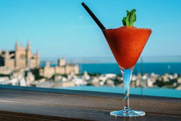 The hotel's Cuba Sky Bar on the top floor is open offers a panoramic view of the old city and the Bay of Palma.