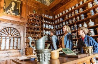 With its woodwork, starry vault and inlaid floor, classified as a Historic Monument, this 17th century apothecary is considered one of the most remarkable in France.