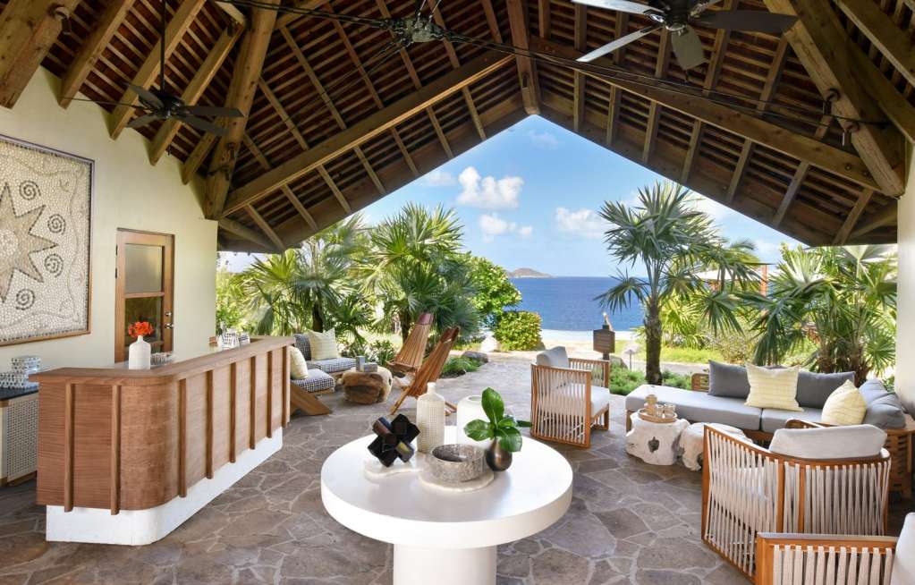 Inspired by its drop-dead gorgeous setting with architecture positioned to follow the lines of the landscape, the property's intuitive, modern design by New York-based design team Meyer Davis evokes a relaxed yet refined sense of luxury bolstered by boundless natural beauty. Honouring Laurance Rockefeller's original vision, the footprint and structures of the property remain the same, including the resort's unmistakable conical shaped roofs that sit atop the heart of the resort, Pavilion. The resort's new design reflects the intrinsic style and sentiment of Virgin Gorda through unique décor, authentic artifacts and dynamic design elements that bring the external environment indoors.
