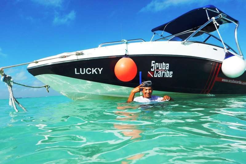 We booked through the Scuba Caribe office at Riu Dunamar and take off from the nearby marina with Captain Julio Sacramento to Isla Mujeres (island of women) in a spray of saltwater.