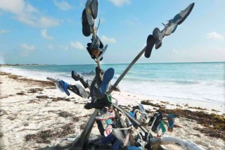 It's an upturned, multi-branched piece of driftwood festooned with the mismatched flip-flops that wash ashore.