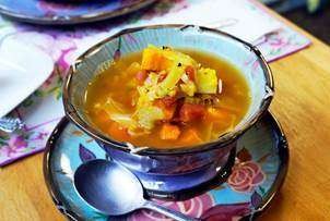 When you need curry in a hurry, this snazzy soup will truly satisfy. Creamy red lentils combined with butternut squash, carrots, baby potatoes, fire roasted tomatoes, cabbage, and curry powder makes a flavorful potage. Serve this delicious dish for an easy and nutritious weeknight meal.