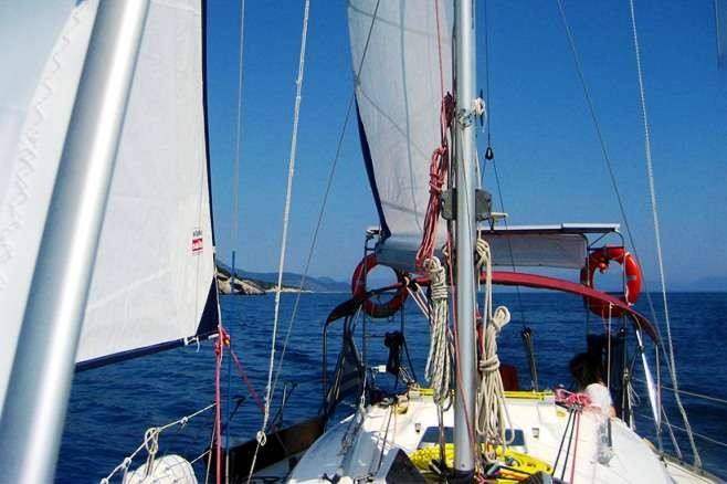 Another day I went with Kefalonia Sailing Point, whose charming skipper Nikos Hionis was clearly at one with his 44 foot long yacht.