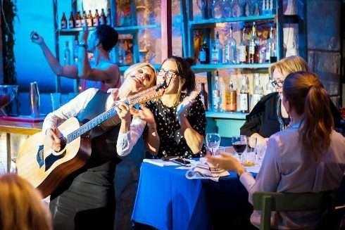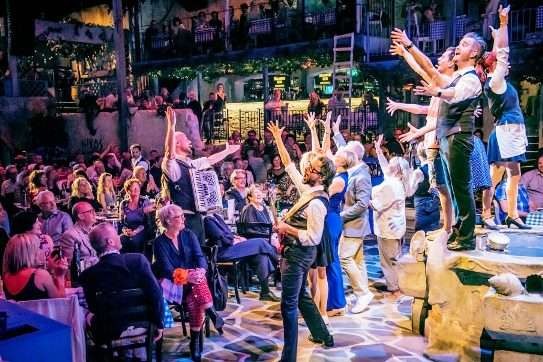 Told through dialogue and ABBA songs, a story evolves and unfolds during the evening, taking place around the guests as they sit at their tables enjoying a delicious Greek meal.