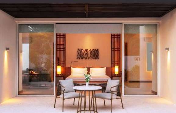 The property had its grand opening in December 2021, with 94 villas and interiors that follow an earthy color palette, with pops of various ocean hues throughout.