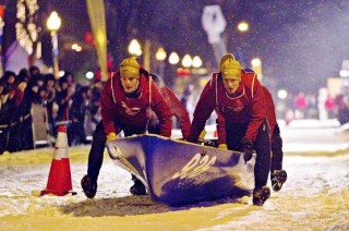 Today, the sport involves crews of five alternately pushing their canoe across the ice on the frozen parts of the river and rowing against currents of four knots, tides of over 15 feet and ice blocks blown towards them by the wind!