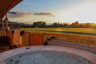 He made up for that interrupted dog's delight, however, the following day, during our one-night stay at Maesmawr Farm Resort, Caersws in the Black Hills area of Mid Wales. Our luxurious 'Safari Tent' included a capacious, small-swimming-pool-sized Jacuzzi, that ultimate epitome of luxury (in Britain, if not in Australia) on the porch, and - you've guessed it right: a four- poster bed!