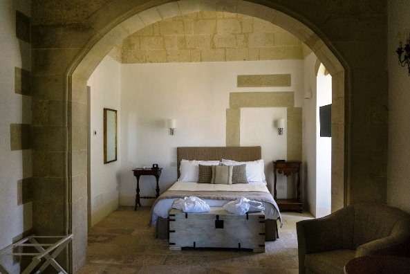 It has been restored under the supervision of the Ministry of Cultural Heritage, with the majority of the rooms in the main building featuring original 16th century vaulted ceilings and art work, typical of old Salento architecture.