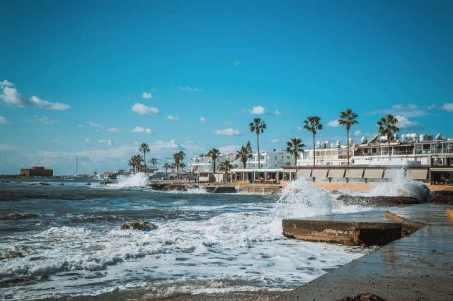 Heading back into town, there is a boardwalk that snakes along the waterfront for about five kilometres along the coastline of central Paphos. The southern section of the boardwalk stretches from Paphos Fort down to the Louis Phaethon Beach Resort. The trail passes by all the central Kato Paphos beaches along the way, with plenty of cafés offering sea views.